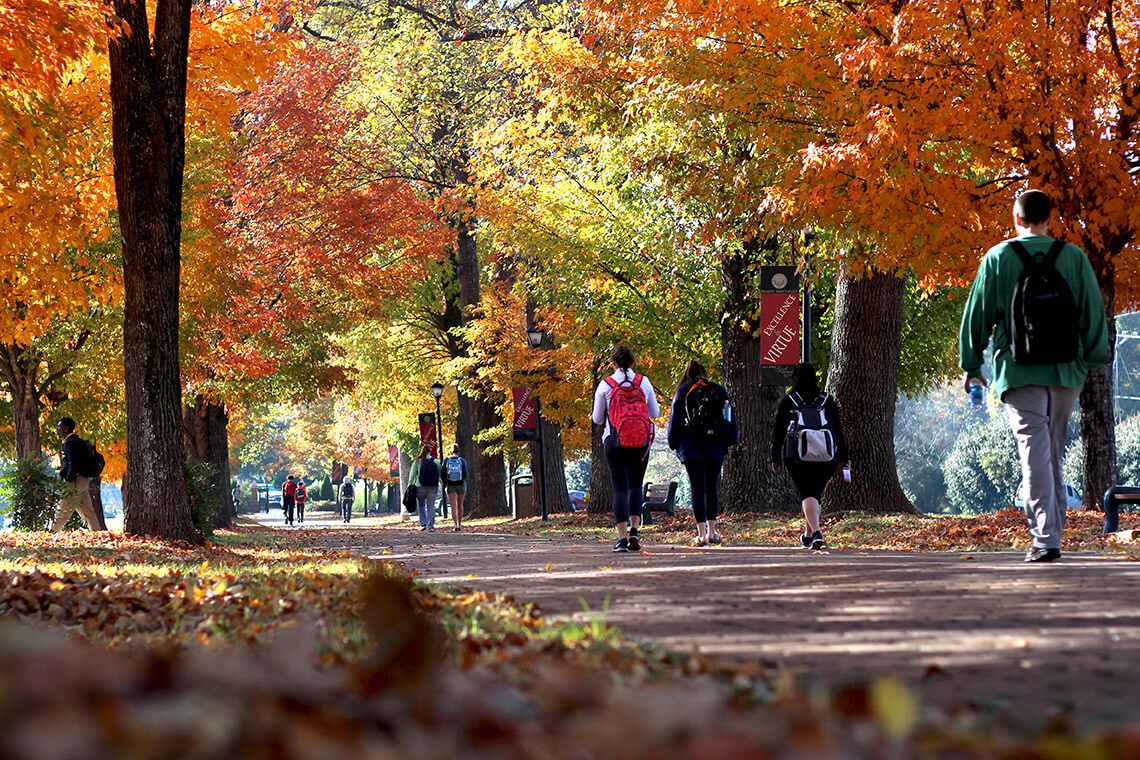 Take in fall colors on tree-lined paths while touring Belmont Abbey College. Photography courtesy of GoGastonNC