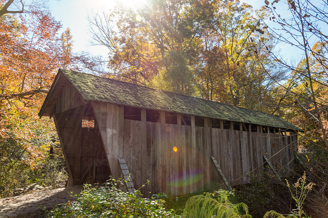 The byway passes through hardwood forests, pastures, and rock outcrops. Near Lassiter Mill, motorists can hop off the route and hop onto one of several hiking trails. Those taking the extension route will encounter the historic Pisgah Covered Bridge, constructed in 1911 and one of only two remaining public covered bridges in North Carolina.