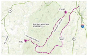 This 9.3-mile main route and its 12.5-mile extension traverse the Birkhead Mountain Wilderness, a remote segment of the Uwharrie National Forest in Randolph County. “Wilderness areas are preserved and have a ‘Leave No Trace’ policy,” says ranger Susan Miller of the Uwharrie Ranger District. “We can’t do typical management that we do in other parts of the forest, so it retains its wilderness nature.”