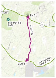 This 1.6-mile stretch of gravel road between Huntersville-Concord Road and NC Highway 73 takes drivers back to a time when Mecklenburg County, now largely metropolitan, was predominantly rural farmland and forests. Native plants and animals flourish in the 775 permanently protected acres surrounding the road, and deer, coyotes, wild turkeys, and other birds are often seen along the way. Fields, livestock, and historic farm buildings are interspersed with forested areas, and a one-lane bridge crosses Ramah Creek midway down the road.