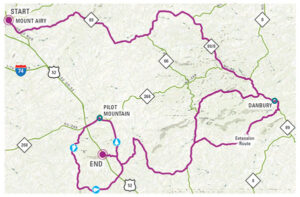 Beginning on NC Highway 89 at the intersection of Round Peak Church Road, this wine country byway rolls through farmland and foothills, over and along rivers, and past vineyards and historic structures, offering views of our iconic Pilot Mountain.