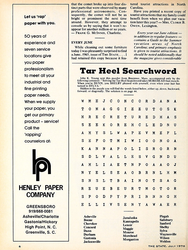 These two searchwords from 1976 tested readers on how quickly they could spot the names of beloved towns from mountains to coast.