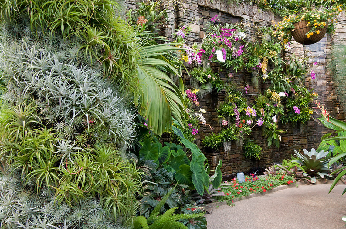 Daniel Stowe Botanical Garden’s Orchid Conservatory is a five-story glass house filled with tropical plants. photograph by JILLLANG/ISTOCK/GETTY IMAGES PLUS
