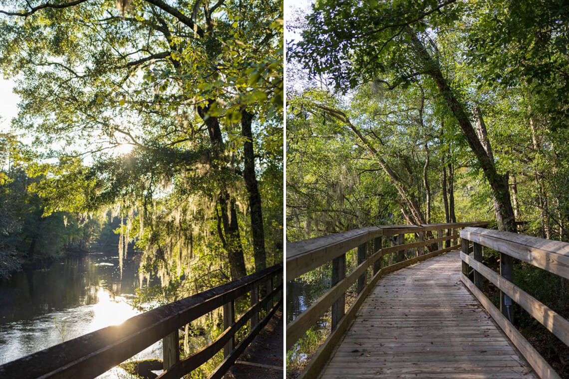 Slow your pace as you follow the elevated Riverwalk along the Lumber River. Photography courtesy of Columbus County Chamber of Commerce & Tourism