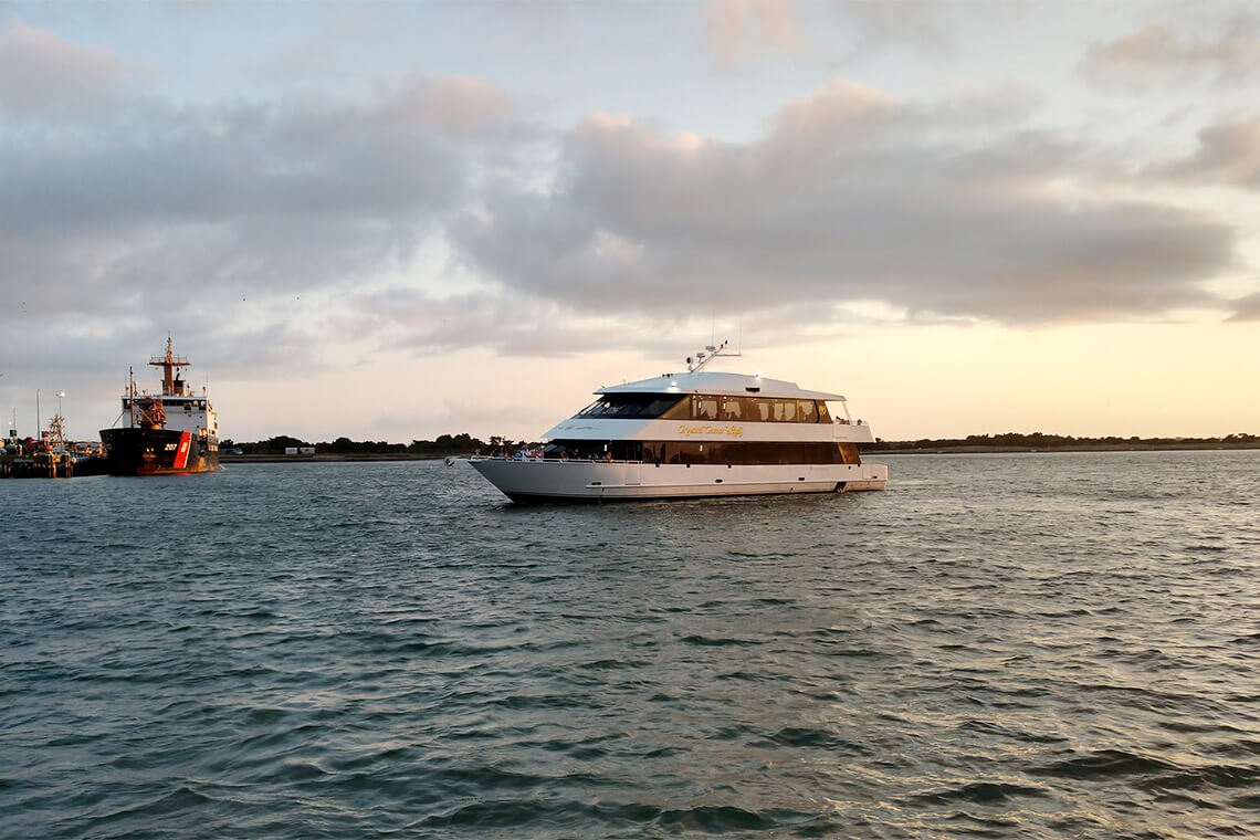 Enjoy dinner with a side of nautical entertainment aboard the Crystal Coast Lady. Photography courtesy of Crystal Coast Lady Cruises