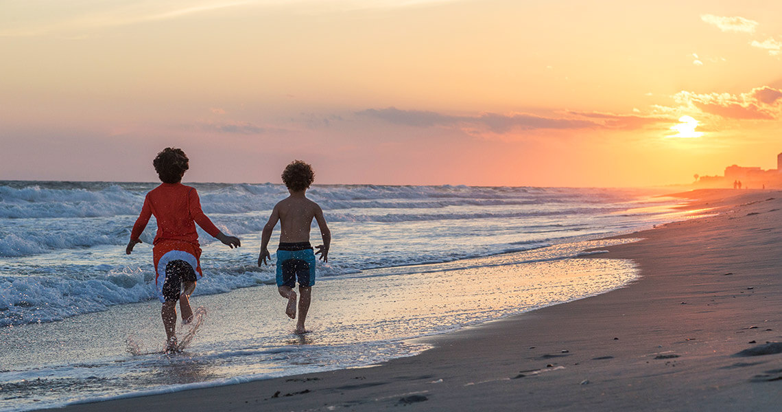 For Emerald Isle’s most glorious, unobstructed sunset view, set out about an hour before sunset and make your way down to the far western tip of the path, known as The Point. Here, the island ends where the Atlantic Ocean meets the Bogue Inlet. Striking shades of orange, pink, and red swirl, mix, and mingle, illuminating the sky all the way down to the ocean’s peaceful horizon.