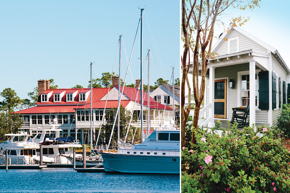 The Harbor Club at River Dunes includes a fine-dining restaurant and third-floor suites overlooking Grace Harbor. The Harborside Cottages are just a short walk away. photograph by Matt Ray Photography