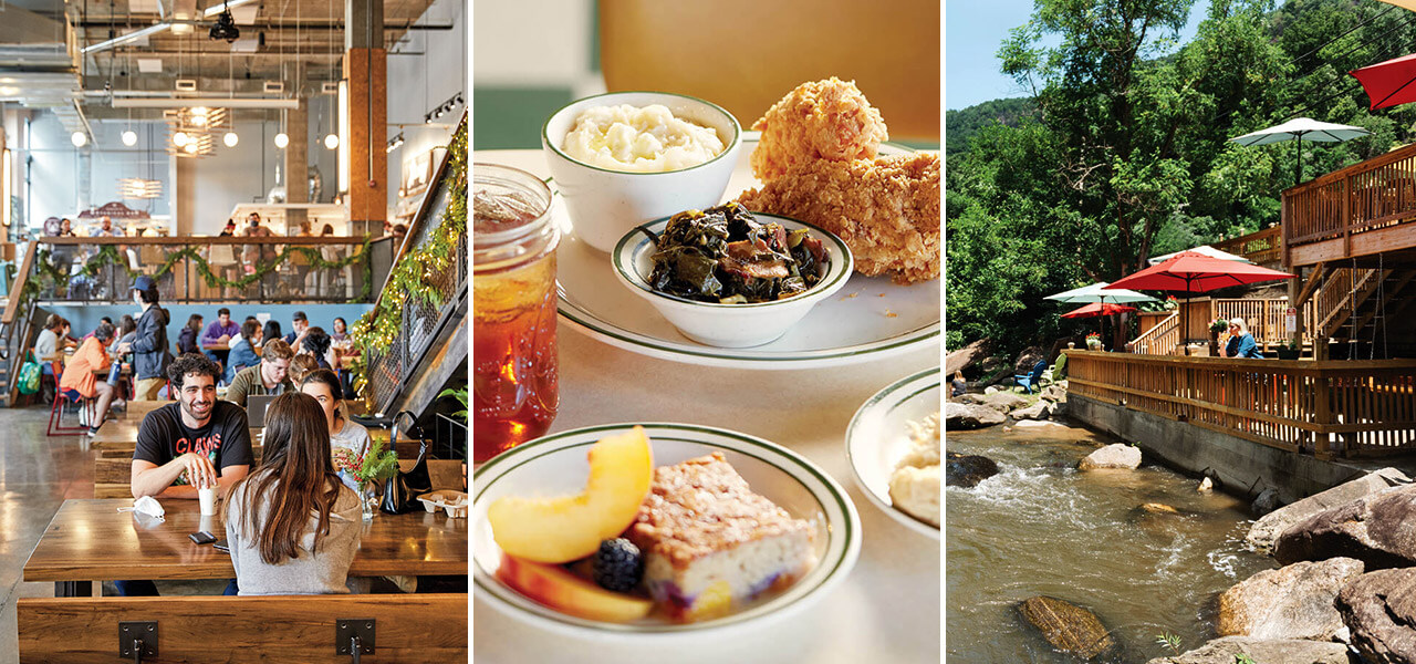 Step onto the porch of this gray clapboard house and you’ll feel like you’re home for dinner. There’s always fried chicken to pass around family-style or in the cafeteria-style buffet line — perfect for a comforting post-hike meal.