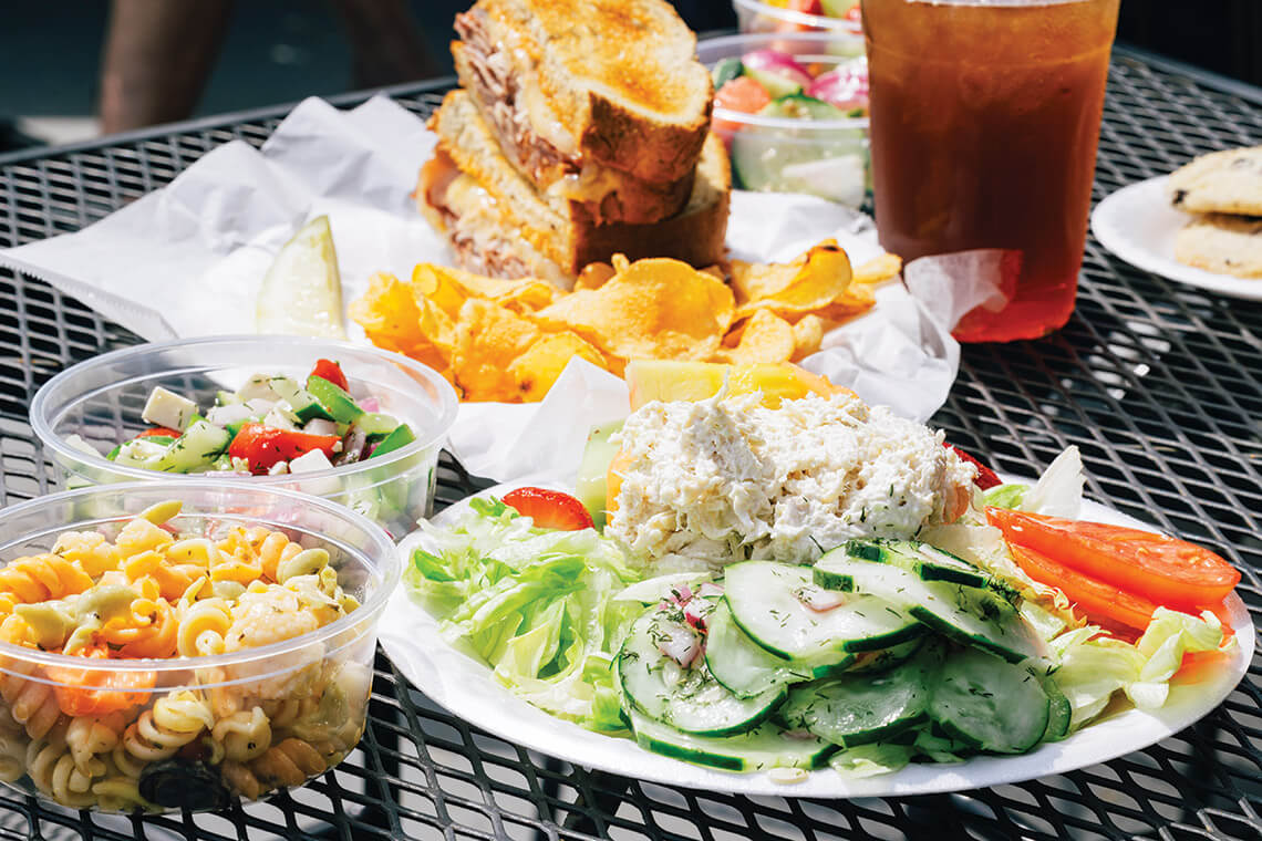 For locals and visitors looking for alternatives to the steady flow of fried fish, Calabash Deli offers lighter fare like chicken salad with fresh fruit, tomatoes, and marinated cucumbers. photograph by Matt Ray Photography