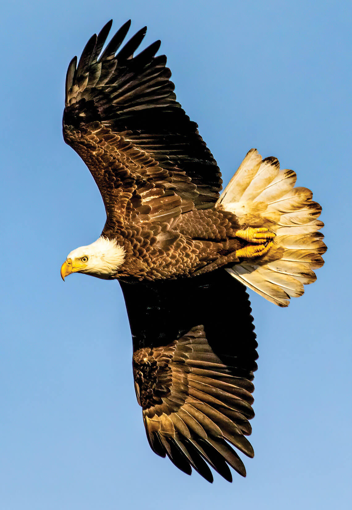Bald eagles have a seven-foot wingspan and a lifespan of 20 years. photograph by HEATHER SCHAEFGEN-RUSSELL