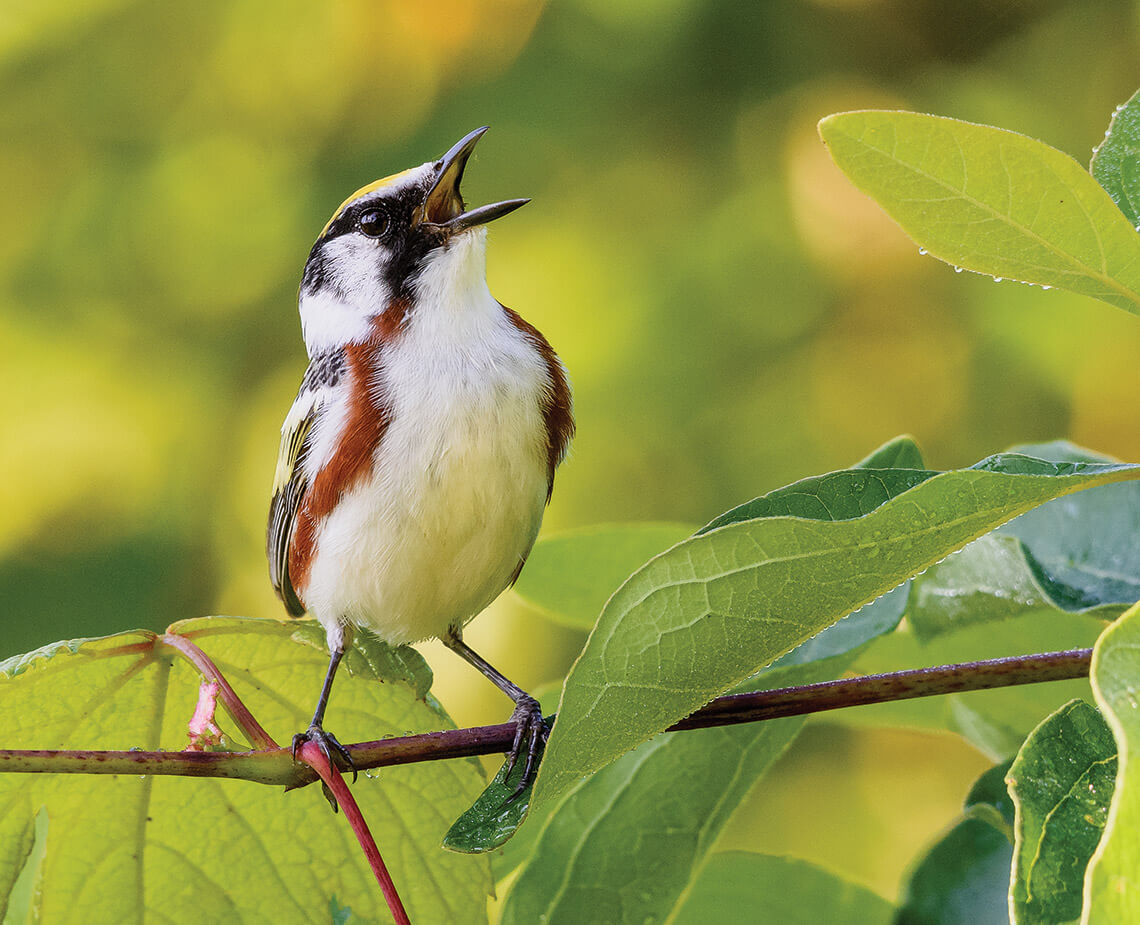 The chestnut-sided warbler, weighing half an ounce or less, represents resilience. photograph by LARRY KELLER