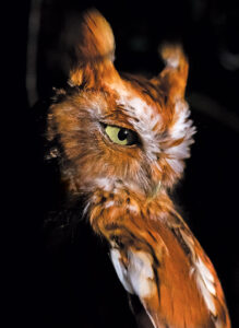 Few sounds at night are more distinctive than the vocalizations of North Carolina’s owls. These night hunters are found across the state, ranging in size from the imposing great horned owl to the tiny northern saw-whet owl found only in our high mountains. They also include the beautiful barn owl, the small eastern screech owl, and the barred owl, one of our most common. These raptors are given far too little credit for controlling rodent populations. Most have densely packed retinal rods for night vision, heads capable of “swiveling” to look backward, and special wing feathers that move almost soundlessly through the air.