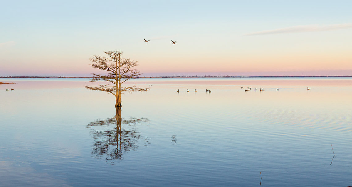 Early morning finds geese on the water and in the air at Lake Mattamuskeet National Wildlife Refuge in eastern North Carolina. photograph by BILL SWINDAMAN/MOMENT OPEN/GETTY IMAGES