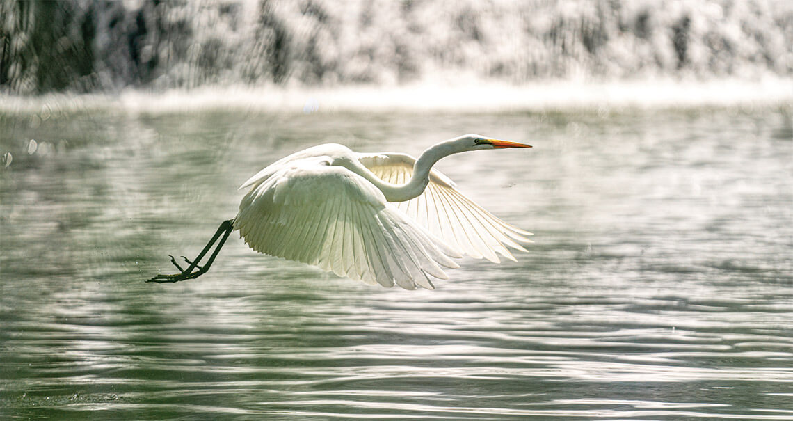The great egret (aka the common egret) is a symbol of survival. Its white feathers made it synonymous with beauty and elegance, but also a target for plume hunters in the late 1800s. In the early 20th century, conservationists rallied to protect it and other migratory birds from the feather trade. Today, the great egret is the emblem of the National Audubon Society, and a defining bird of North Carolina’s eastern wetlands. It is one of our largest wading birds, standing three feet tall with jet black legs and a yellow-orange bill. In North Carolina, the great egret is partially migratory, meaning that we have both a resident and migratory population of these stately creatures. Almost extirpated from this region a century ago, they are now the embodiment of enlightened conservation practices.