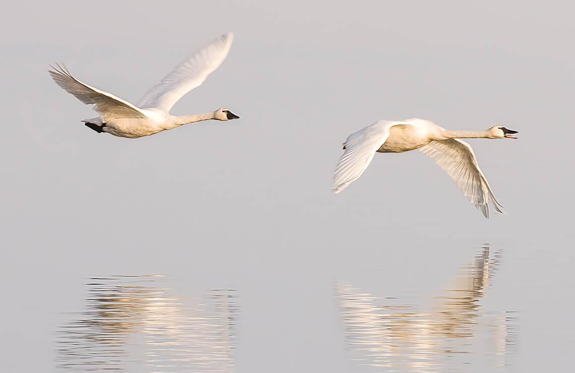 To carry their weight of 10 to 20 pounds, tundra swans have wingspans of approximately five and a half feet. photograph by Jared Lloyd