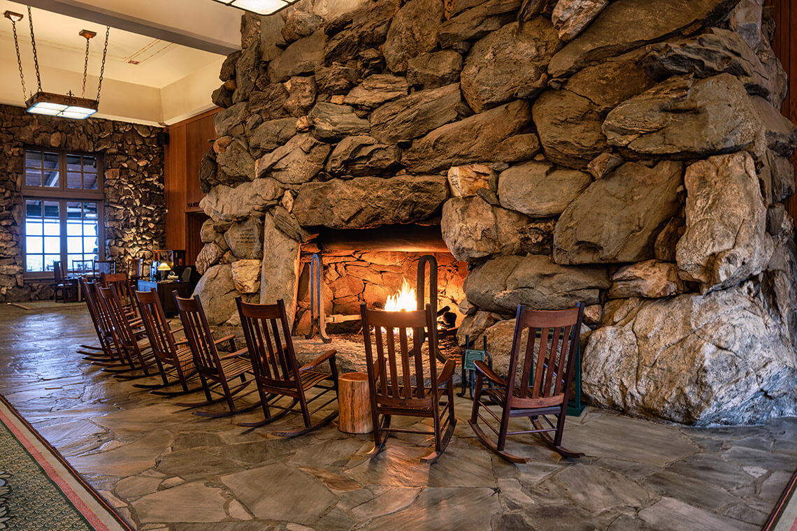 Enjoy warm sun beams on the terrace during the day and then gather around the roaring fireplace when the nighttime chill sets in. Photography courtesy of ExploreAsheville.com