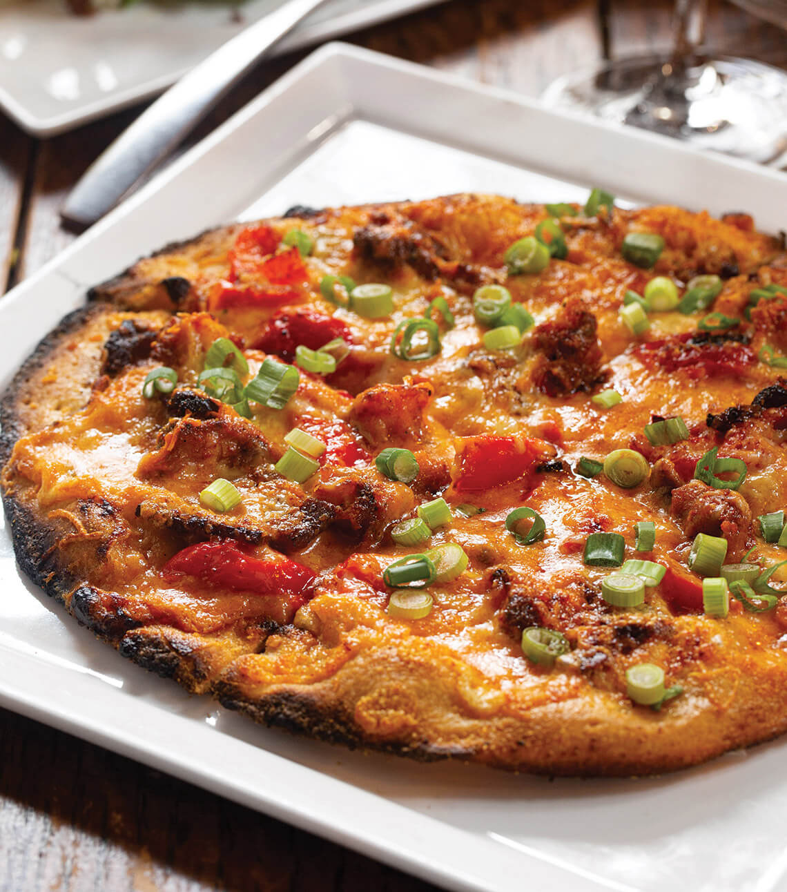 Try the Neapolitan pizza topped with Peppadew peppers, Benton’s bacon, and smoked Cheddar. photograph by Tim Robison