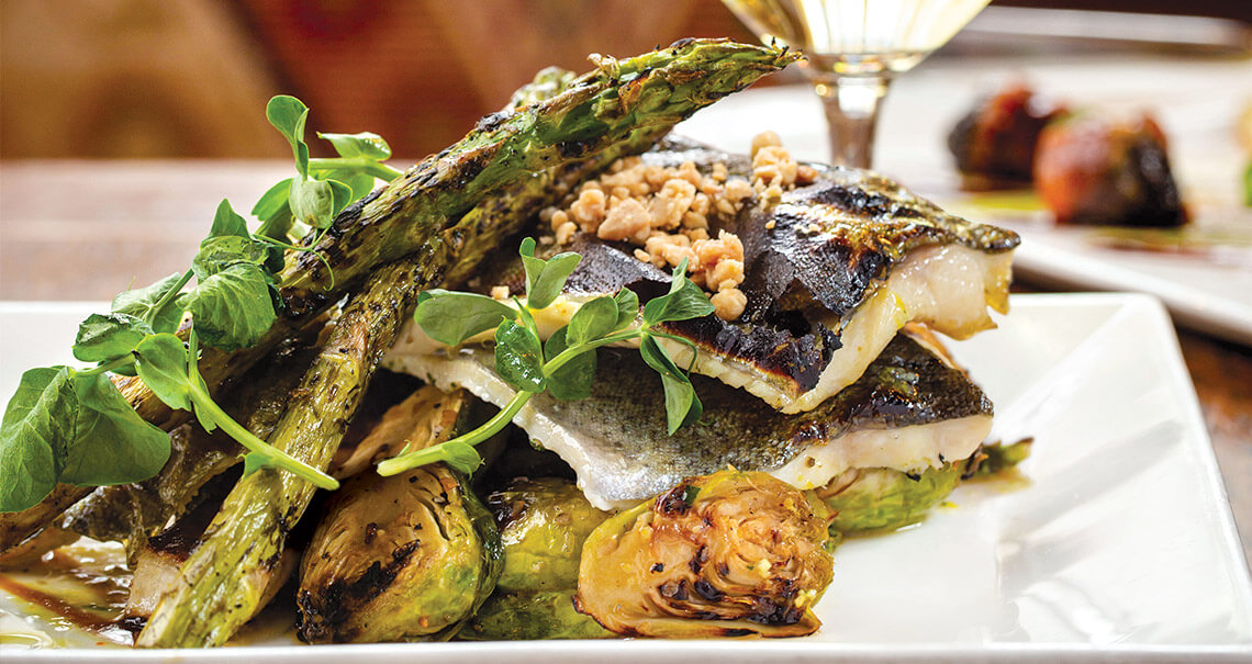 A wisp of smoke drifts through the dining room at Bistro Roca in Blowing Rock. Oak logs crackle in the wood-fired oven, imbuing local trout and Brussels sprouts with complex, smoky flavors. “The wood-fired oven is the heart of the restaurant,” says Executive Chef Seth Parker. “When you walk in, you definitely get smacked with the smell of the wood fire.”