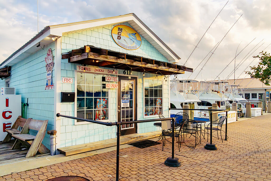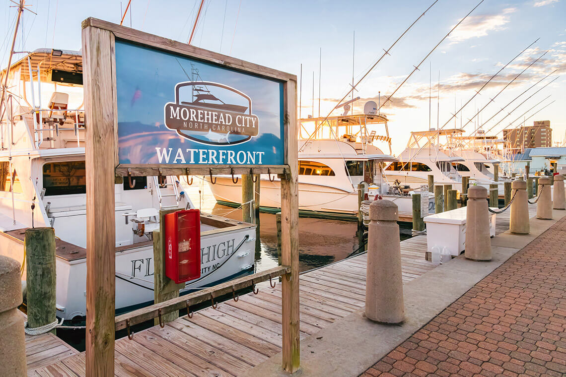 Located waterside on Shepard Street, Big Rock Landing is the site of the longstanding Big Rock Tournament. photograph by Bluefin Artistry, Courtesy of Downtown Morehead City, Inc.