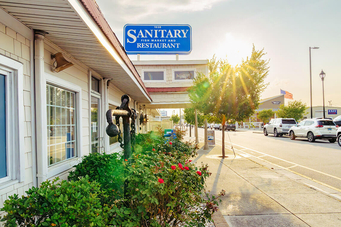 The Sanitary has been an iconic spot to experience Morehead City’s fishing culture since 1938. Take a seat at the window and watch boats pass through Harbor Channel as you munch on a basket of hush puppies. photograph by Bluefin Artistry, Courtesy of Downtown Morehead City, Inc.