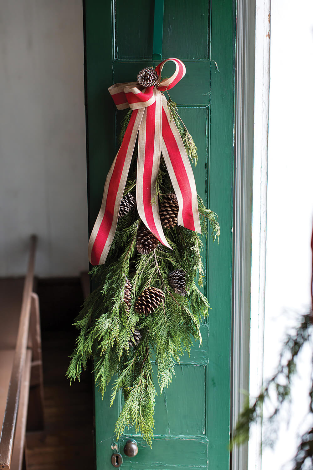 Holiday swags of greenery reflect the church’s simple design and history. photograph by Sara Wilson Coffin