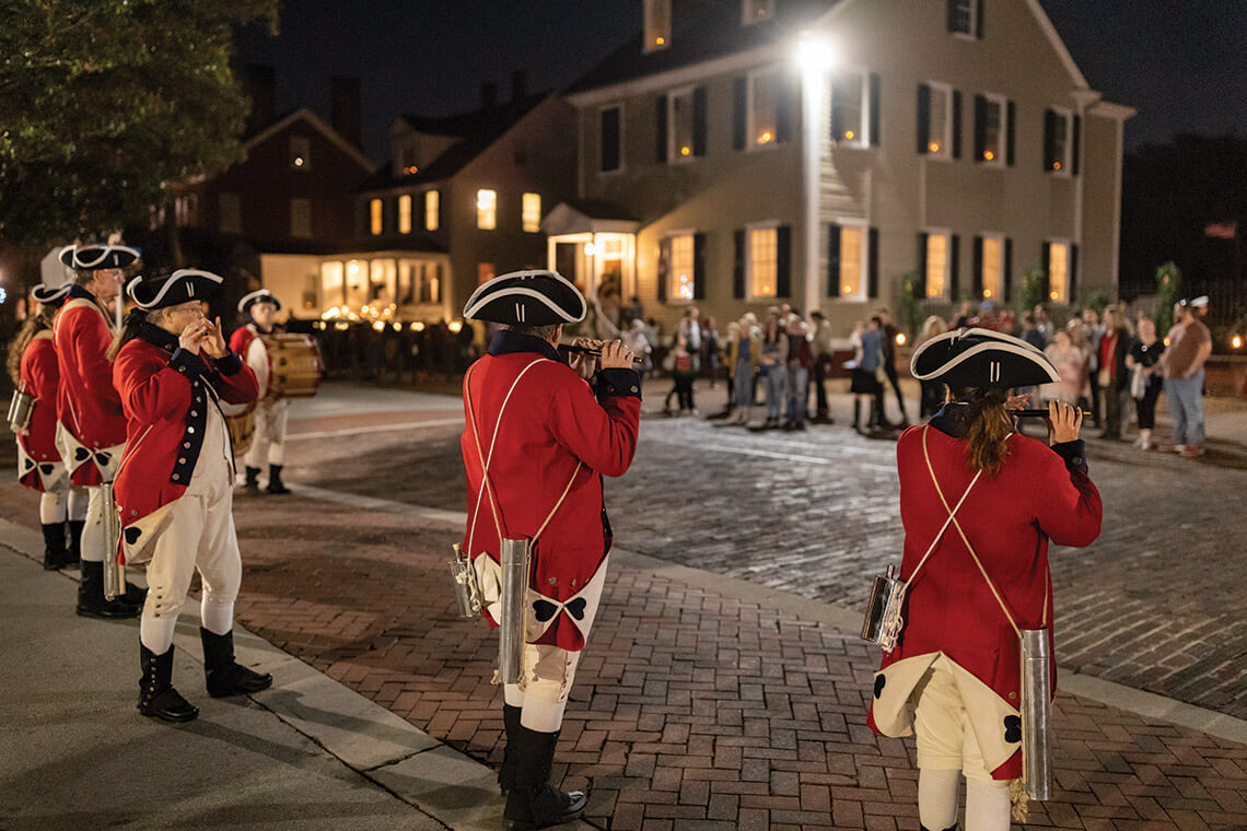 Visitors absorb the sights and sounds of the colonial era as black-powder fireworks burst over the grounds.<br><span class="photographer">photograph by Charles Harris</span>