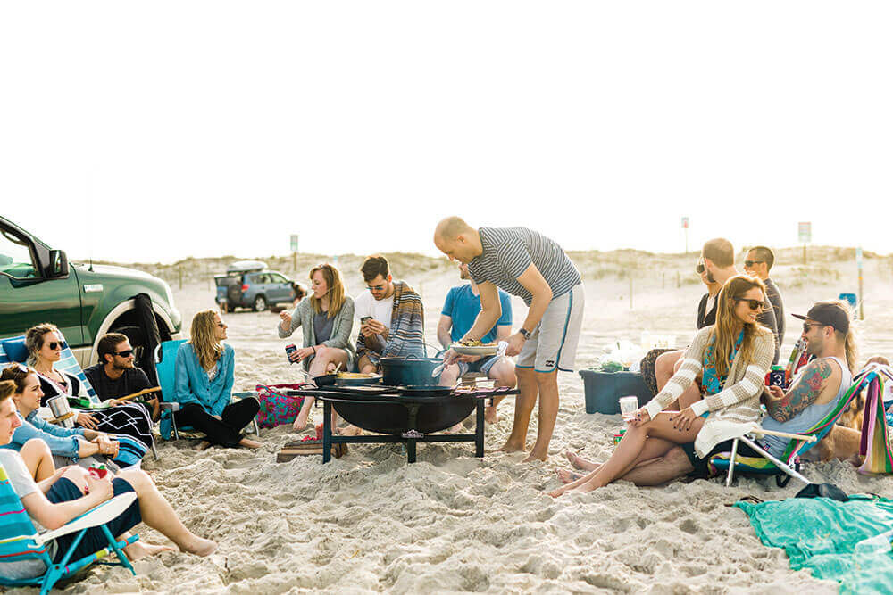 Several times a summer, when the restaurant is closed, Love hosts a surf day and beach cookout for his staff. They load up their four-wheel-drive trucks with boards, beach chairs, and coolers stocked with everything they’ll need for a sunny afternoon by the sea. More often than not, they head to Freeman Park on the northern end of the island. Love sets up his wood-fired grill in the sand, and the feast is on: beer-steamed clams with roasted cherry tomatoes and garlic; grilled shrimp with corn, chorizo, and basil-lime butter; seared grouper slathered with pesto; grilled baguette slices; and a salad of charred red cabbage, blistered tomatoes, and pickled vegetables.