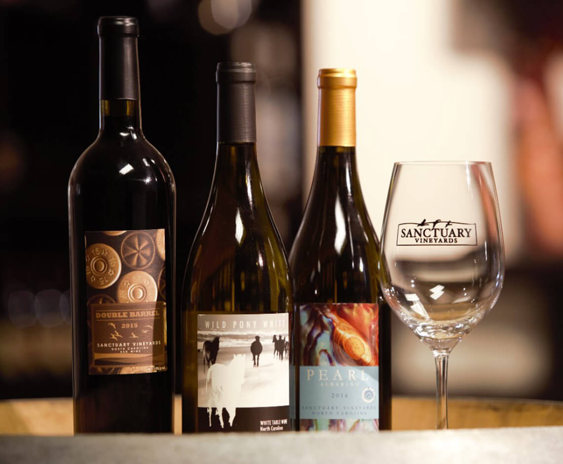 Pick your perfect bottle after enjoying a wine tasting at Sanctuary Vineyards. Photography courtesy of The Northern Outer Banks