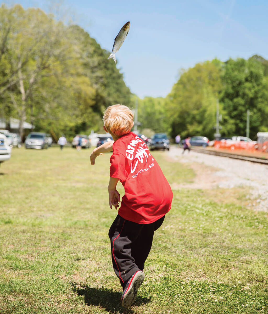 Still, the festival began to wither. One year, just 4,000 people came. It wasn’t until 2014 or so when it really started to come back to life, Tommy says. Why? The organizers put in a lot of hard work. They meet at least once a month all year to get ready. Now, about 25,000 people come to town for the festival, making Grifton’s population swell, at least for one long weekend, to 10 times its normal size. A lot of the young folks, when they leave town for college, for work, or to start a family, will only come back to Grifton twice a year: on Christmas and in April, for the Shad Festival.
