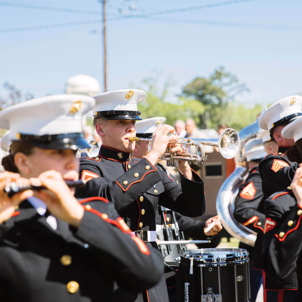 The Second Marine Division Band kicks off the parade at the festival. photograph by Geoff Wood