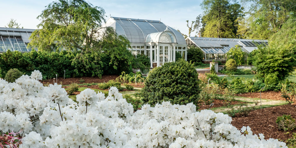 No Southern garden is complete without dogwoods blooming in spring — including in the 129-acre Reynolda Gardens at Wake Forest University. photograph by Jay Sinclair