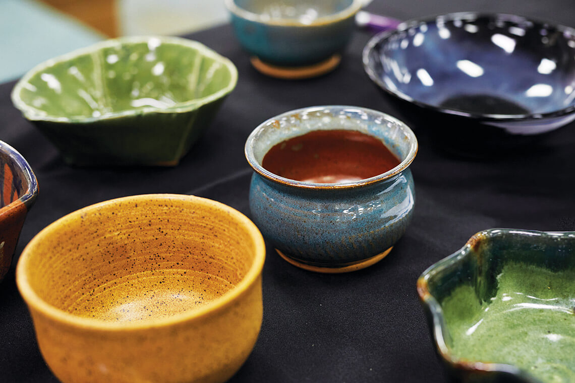 Each year, more than 50 local artists fill the Pottery Room with bowls in every color. For attendees, the bowl they take home is a piece of functional art and a tangible reminder of the meal they shared together. photograph by Jon Black