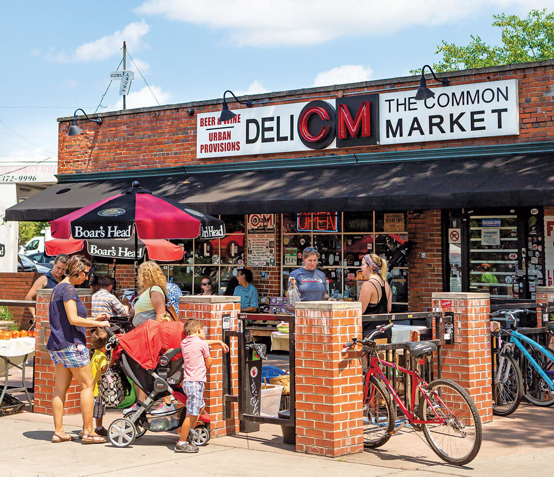 The Common Market. Half of Common Market, on Commonwealth Avenue, sells wine, beer, and novelty gifts, like Jesus action figures and vintage lunch boxes. Throughout the space is communal seating for the market’s restaurant, which serves soups, salads, and sandwiches. “You could be sitting next to a banker, or you could be sitting next to somebody who’s homeless,” Ward says. “Everyone is welcome. If you’re sitting by yourself, you will not leave without knowing someone.”