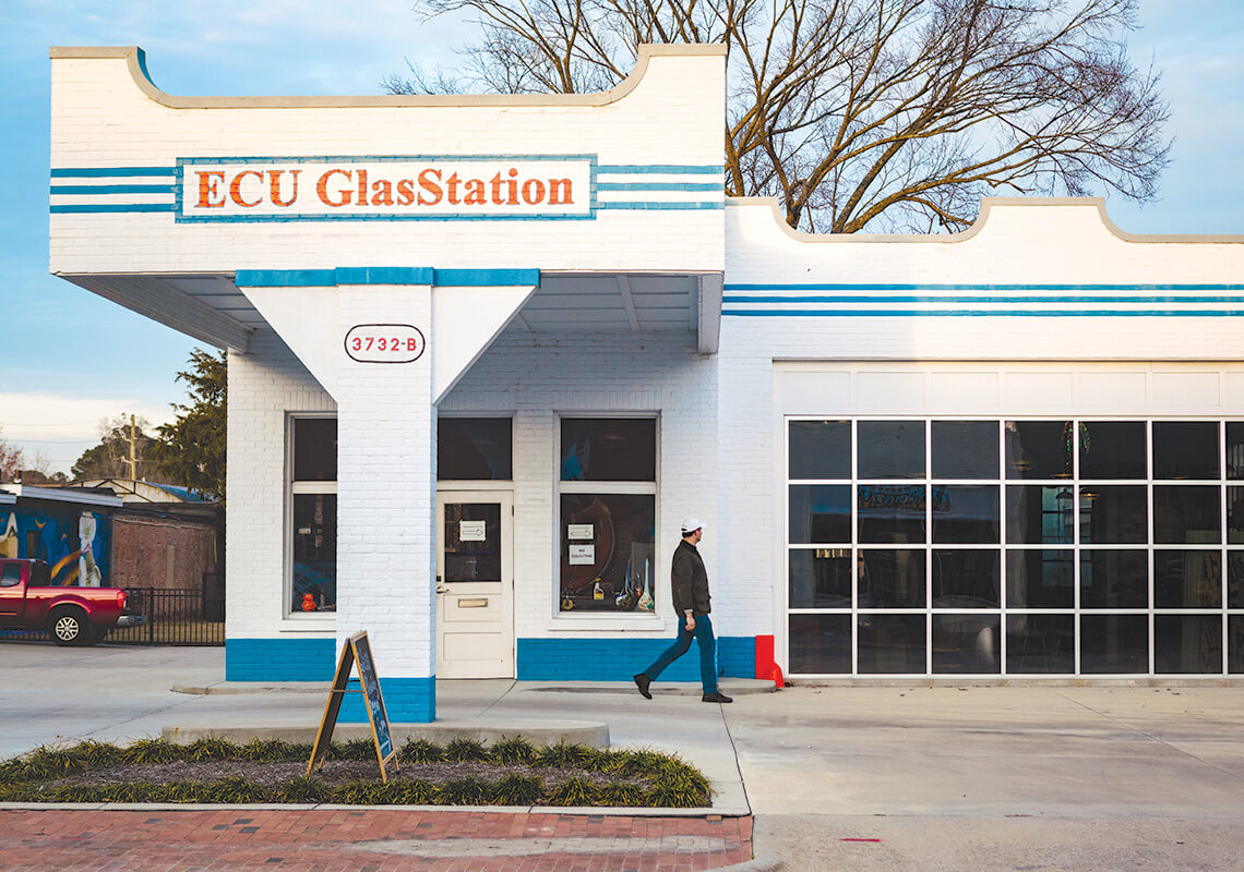 The GlasStation. East Carolina University holds its glassblowing classes inside this restored gas station, and students often open the studio to the public for demonstrations. “It’s been wildly successful and brought a lot of attention to town,” Edwards says.