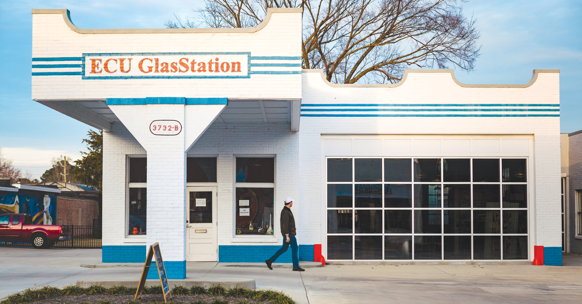 The GlasStation. East Carolina University holds its glassblowing classes inside this restored gas station, and students often open the studio to the public for demonstrations. “It’s been wildly successful and brought a lot of attention to town,” Edwards says.