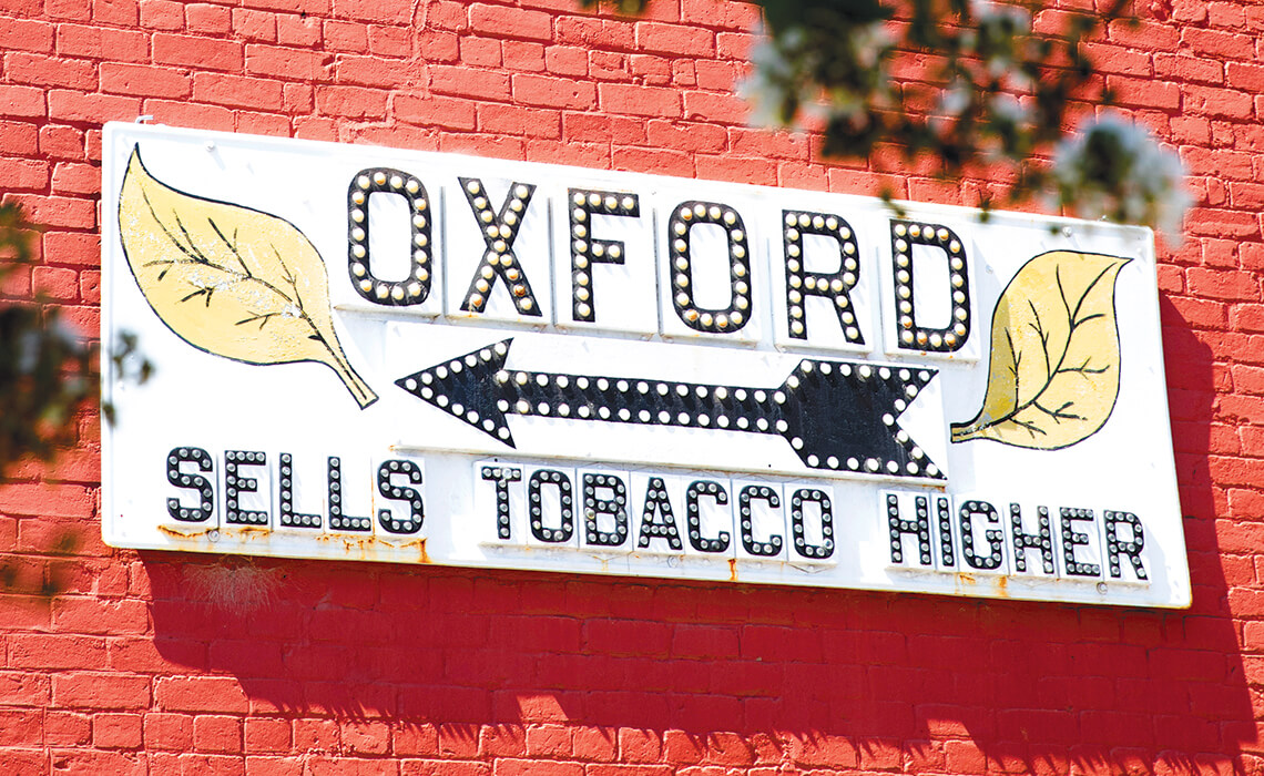 But evidence of the role that the industry played in shaping the town remained strong, and many of those clues can still be seen today. Some of the most impressive mansions in the historic district were built by tobacco barons. A sign reading “Oxford sells tobacco higher” hangs on the side of the Granville History Building — part of the Granville County Historical Society Museum, where May is executive director. The museum highlights the economic and cultural influence of tobacco. Even new businesses offer a nod to those agricultural roots. All of this, May says, makes the town “a quaint, friendly community that feels like taking a walk in the past.”