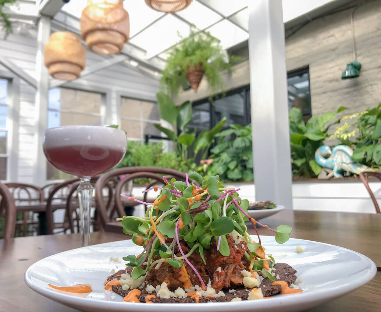 Enjoy a creative bite in Shep + Ford’s indoor-outdoor dining room. photograph by Visit Greenville, NC