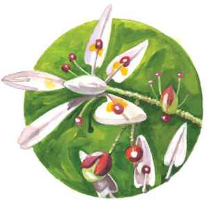 Rock tripe lichen is part fungus, part alga. It can grow up to two feet in diameter and has the appearance of a brown lily pad. It’s rumored that this edible lichen kept George Washington’s troops from starving. Walker has found it while rappelling during surveys. “When I tell people about rock tripe, I always explain that there’s a difference between edible and palatable,” Walker says. “It tastes like a cross between shoe leather and rubber bands.”