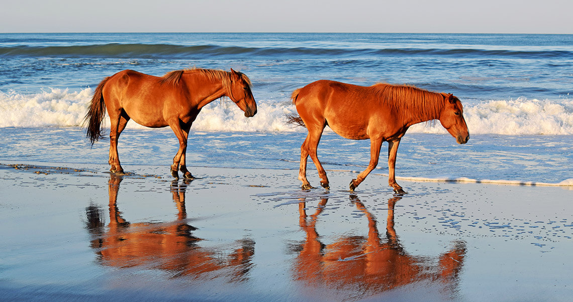 The wild horses of Corolla are survivors, living remnants of history, legend, and war; they are resilient treasures from another age and a distant shore. They have adapted beautifully to their island home, but they require the delicate care and dedication of their protectors, along with the respect of every visitor they receive. You can see them for yourself if you head to the northern tip of the Outer Banks and leave the paved roads behind. If you’re lucky, you might just glimpse a sorrel mare streaking through the surf before she disappears between the dunes.