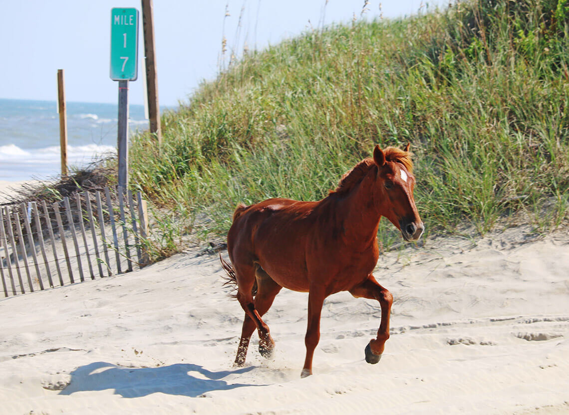 “Because an astonishing 50,000 people per week visit Currituck in the summer, every guest must do their part to preserve and protect the horses,” he says. “This means staying at least 50 feet away from them at all times, never offering food to them, and remembering that distance from humans is ultimately what will keep them safe.”