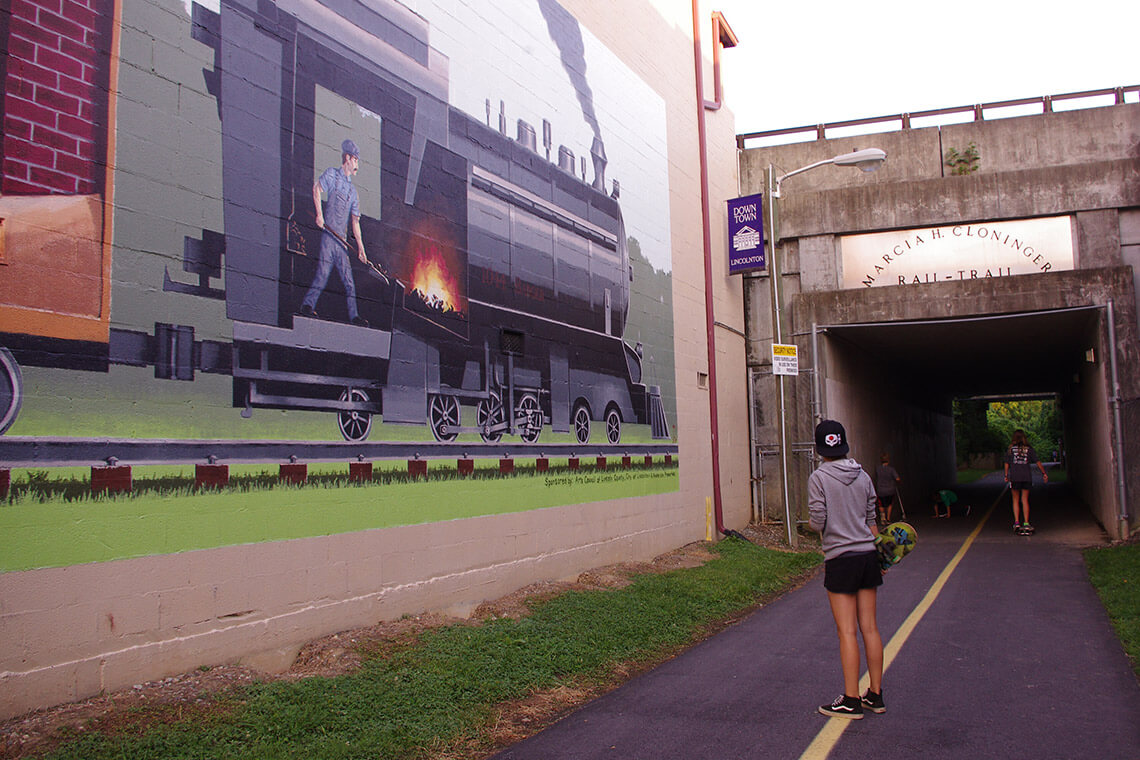 Check out the mural on the Marcia H. Cloninger Rail Trail. Photography courtesy of VISIT LINCOLNTON NC