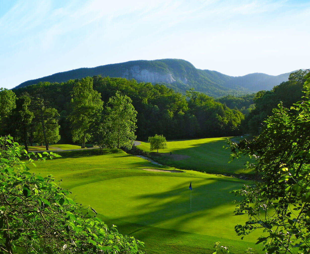 Two 18-hole golf courses, both of which have a Golf Digest four-star rating, make Rumbling Bald a golfer’s dream destination. The Bald Mountain course, situated beneath rocky cliffs, was designed by William B. Lewis and built in 1968. The nearby Apple Valley course, designed by Dan Maples and opened in 1986, features a beautiful and secluded back nine near Youngs Mountain.
