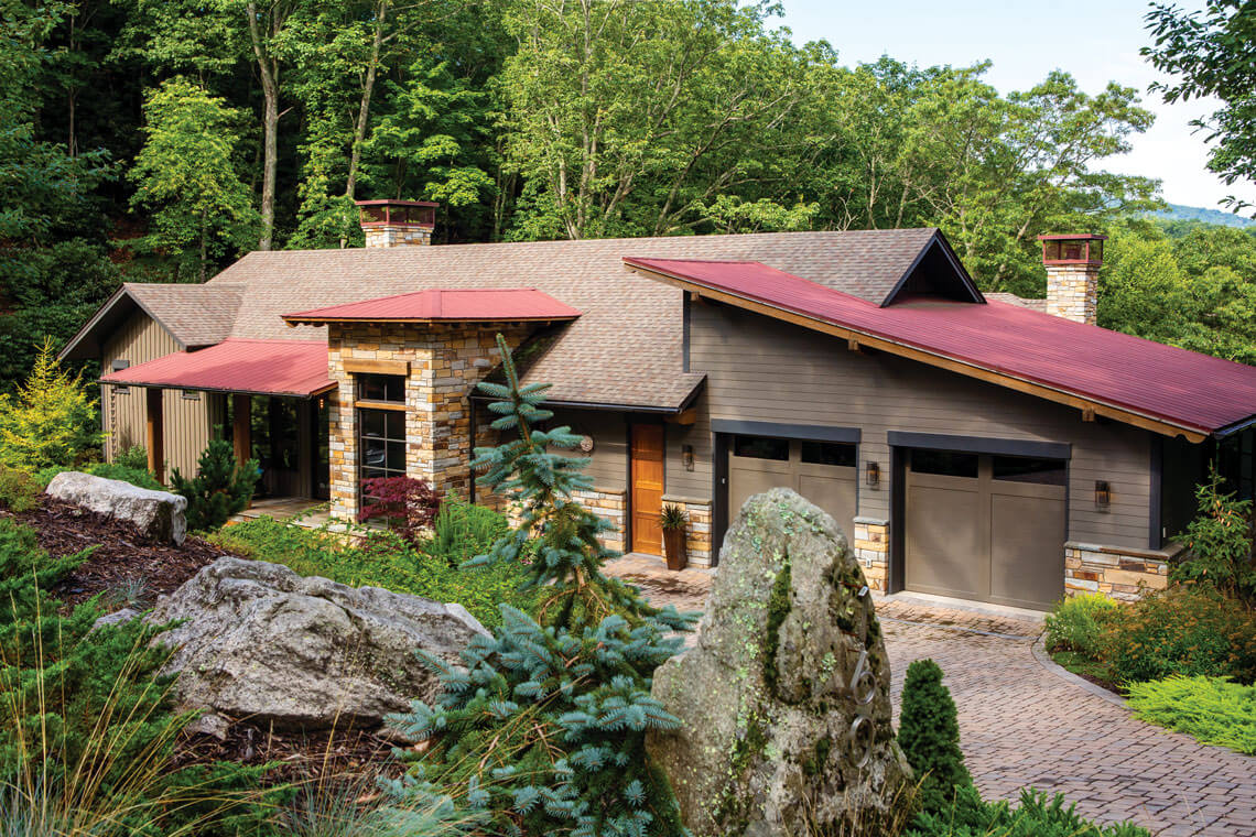 Like the Doellgasts’ home, the Joneses’ juxtaposition of an Asian-influenced house in the North Carolina mountains isn’t jarring; instead, the Appalachian rhododendron thickets harmonize with the Eastern-inspired stacked stone and dramatic eaves. “We’re in a rhododendron grove, but we’ve also got that long view, which is really nice,” Jim says. “It’s the best of both worlds.” He’s referring to the feeling of seclusion with unobscured views, but he could easily be talking about the meditative melding of Eastern design in his western Carolina retreat.