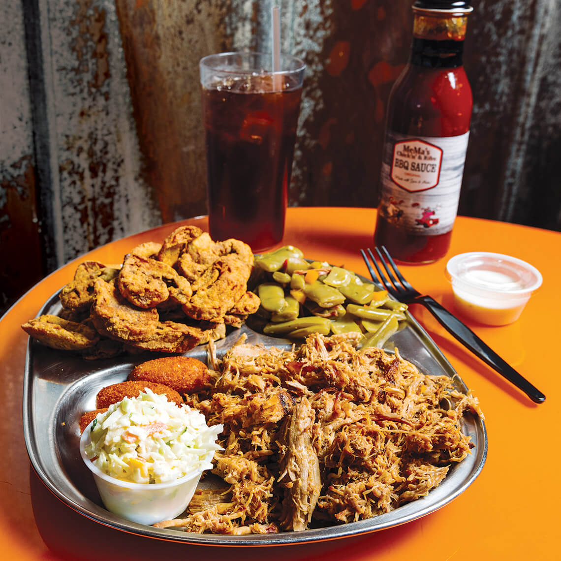 Beyond the offerings at MeMa’s Chick’N’ & Ribs — like pulled pork, coleslaw, green beans, fried mushrooms, and hush puppies — owners Myra and James McDuffie are proud of the work they do for the community. photograph by Matt Ray Photography