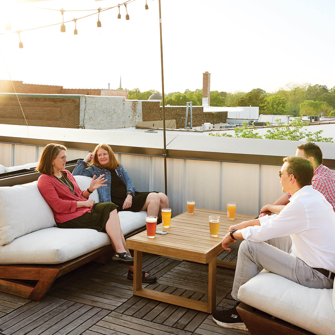 On warm summer evenings, patrons enjoy brews on the restaurant’s rooftop.<br><span class="photographer">photograph by Stacey Van Berkel</span>