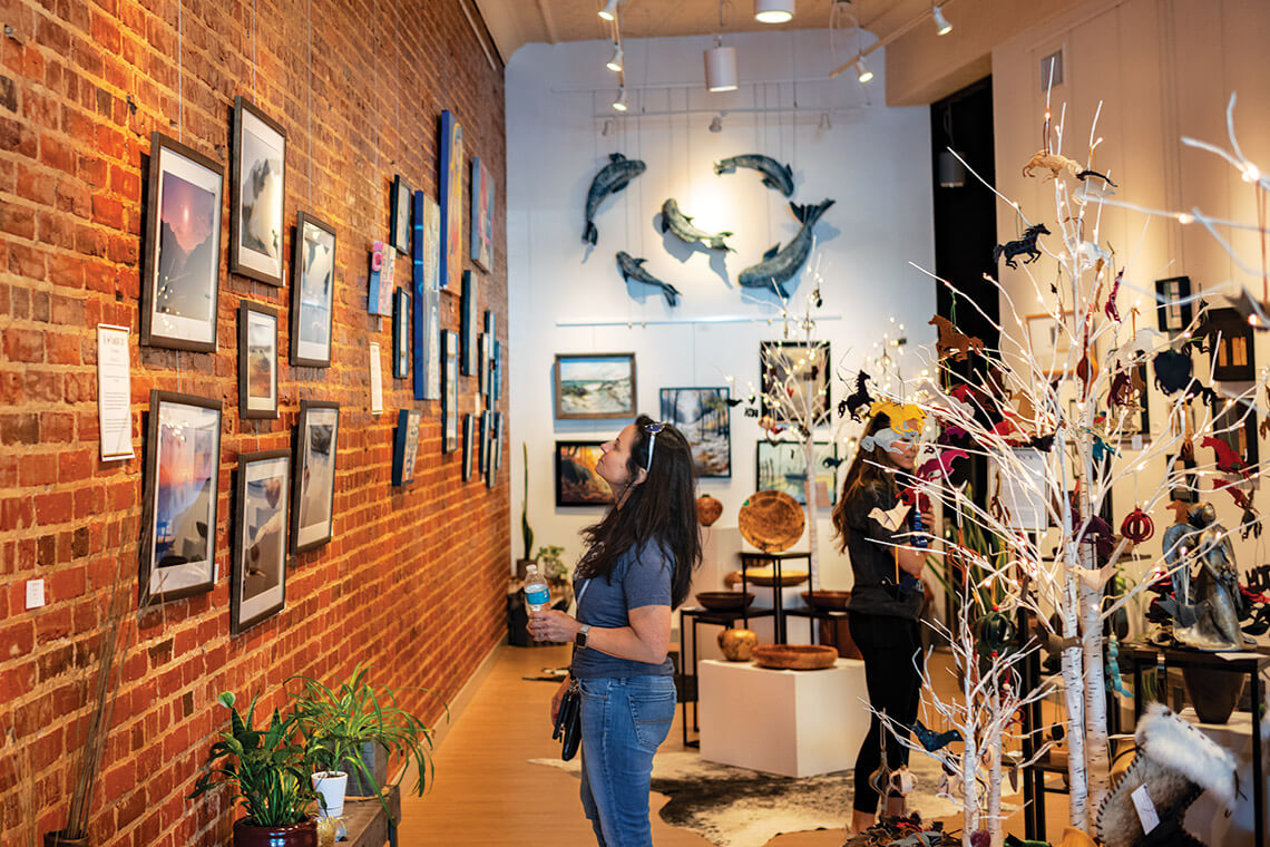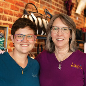 Olivia Wiggins and her mom, Cathy, opened Frank’s Fine Arts in December 2021 and named it after Olivia’s late grandfather, an accomplished woodworker. The gallery occupies the building where Paul Howard Rose, founder of Rose’s Dime Store, opened his first department store. The front desk of the gallery was made with Frank’s planer and router tables. “We wanted to carry his spirit through [the space],” Olivia says. The works of eight artists are represented, including Cathy’s leather sculptures. Olivia is excited to share her love of art with the community that she and Cathy have been a part of for more than 20 years. “I think it’s the coolest experience,” she says, “because each person I talk to has their own perspective.”