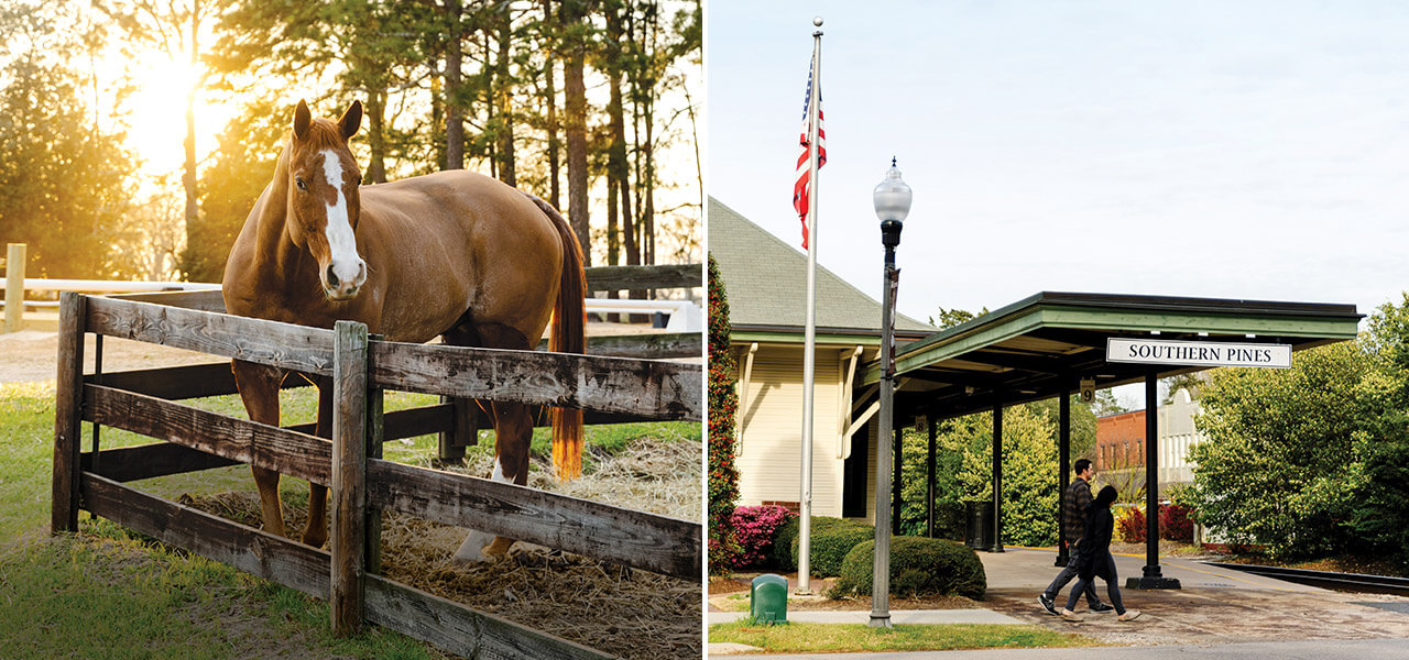 Woo woo! A whistle wails through the streets of downtown Southern Pines as a train screeches to a halt in front of the circa-1898 station. Passengers from as nearby as Raleigh and as far away as New York disembark and step onto the platform. Maybe those passengers feel the potential in the air, the possibility to create. In this corner of Moore County, writers put words to their newest ideas; dozens of horses, ready to compete, roam the pastures lining Youngs Road; and golfers tee off, hoping for a successful day on the links. They’re all artists of sorts. On the page, in the ring, on the green. Here, inspiration is everywhere: Inside the North Carolina Literary Hall of Fame. In the kitchens of award-winning chefs. On the streets lined with longleaf pines.