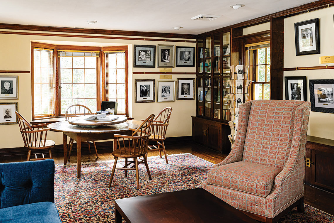 James Boyd’s former study at Weymouth Center has been transformed into the NC Literary Hall of Fame. The faces of notable writers, including Carl Sandburg and Doris Betts, line the walls. photograph by Faith Teasley