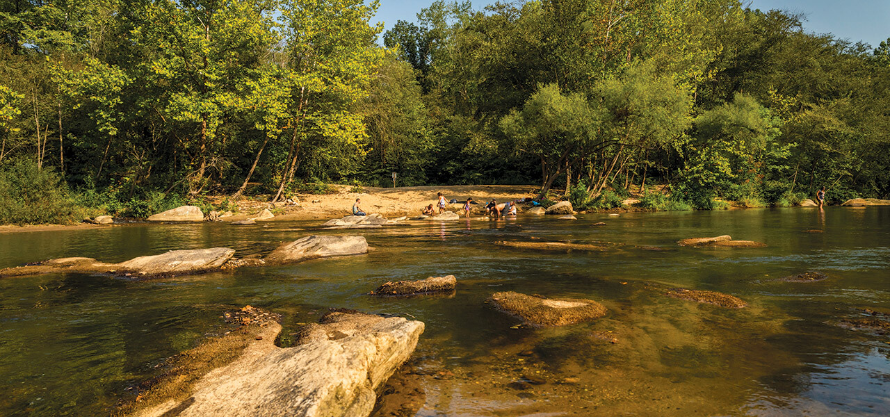But that’s not even the best spot. The beach at the Anglin Mill access, located down Old Anglin Loop and Mayo Beach roads (few signs, little pavement, easy to miss — I’m lost just thinking about it), has a trash can that’s full enough to suggest that plenty of folks go on weekends. But it’s been delightfully deserted on the weekday afternoons when I’ve snuck my boys up there, life jackets in hand. It’s plenty deep enough to swim and calm enough to float, and there are gorgeous rapids just upstream that roar when the water’s high. That roar is loud enough to drown out any worries beyond the present, beyond making sure you stay downriver of anybody you’re trying to keep track of. It’s my special spot. When I’m back home in Greensboro, standing in line at the post office or doing my taxes, that’s the place I dream of. Part of me is maybe always ankle-deep in the Mayo.