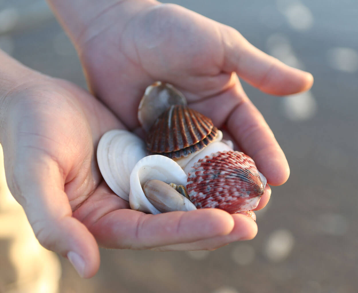 Between low and high tides, collecting shells is a must along the coast. photograph by The Crystal Coast